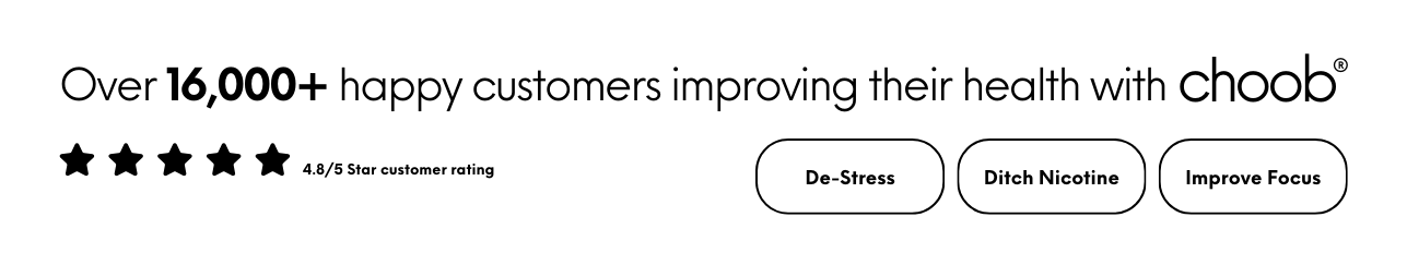 This helps you to replace the habitual action of smoking or vaping with a healthier alternative. Secondly, stress and anxiety are common triggers for nicotine cravings. The Choob's stress-reduction features help users manage their stress levels more effectively. Reducing the urge to reach for a vape or cigarette when stressed.