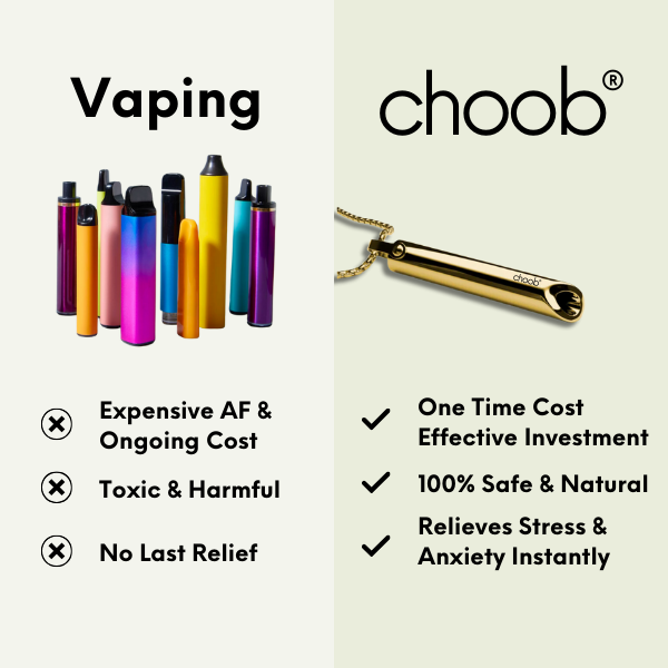 The Choob Necklace mimics the inhale/exhale action when vaping or smoking, which helps you replace the physical habit (hand-to-mouth).